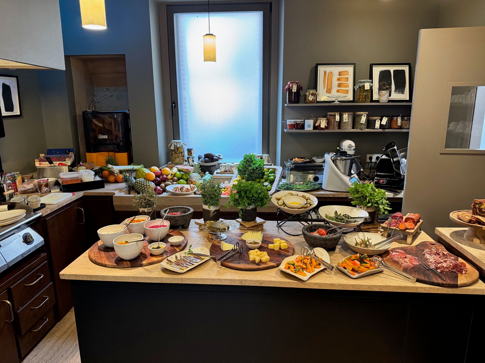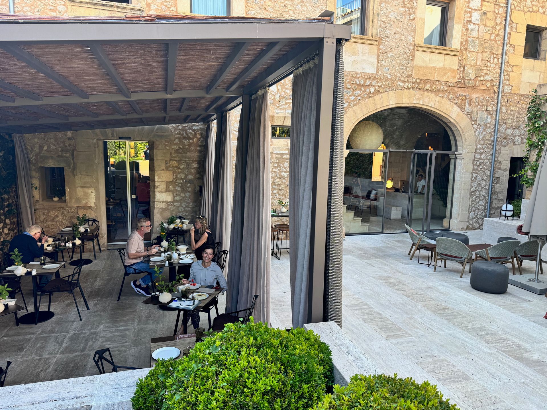 Can Auli, Pollença stands as one of our most memorable hotel experiences ever. Walking through the front door feels like crossing a threshold from the busy world into a peaceful sanctuary. Set just far enough from Pollença's center to escape bustle while remaining walkable to everything, the hotel became our perfect refuge. The lobby offered an ideal reading retreat during Suzanne's afternoon naps, while Alfonso wasn't exaggerating when he claimed Can Auli serves the best breakfast in Mallorca.