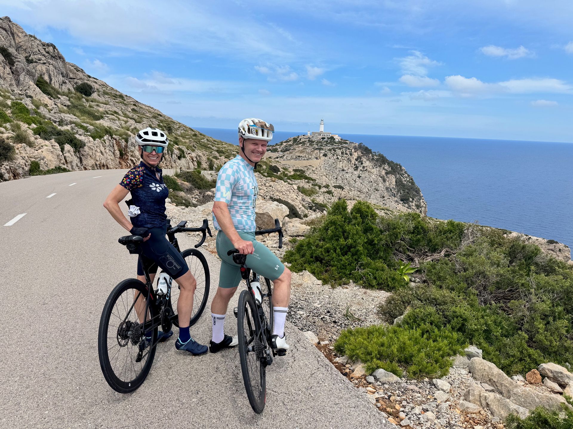 Today brought the real classic—Cap Formentor. This 35-mile round trip with 3,300 feet of elevation gain delivers some of the most stunning clifftop coastal riding anywhere. While the road wasn't closed to cars this visit (as it sometimes is), traffic remained light and respectful. More importantly, cyclists far outnumbered cars, creating that special cycling paradise atmosphere even with some vehicle traffic.